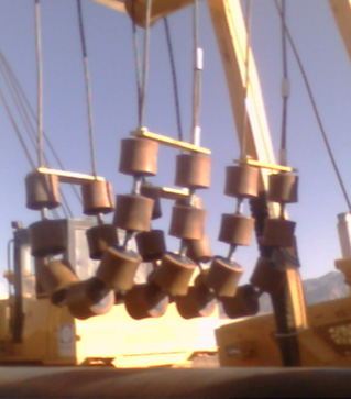 | DL系列管道專(zhuān)用吊具是管道焊接完工后下溝作業(yè)時(shí)使用的專(zhuān)用起吊、行走設備,與吊管機配合使用,一般四臺套為一作業(yè)組。DL系列管道專(zhuān)用吊具,設計合理,重且輕.起重能力強,安全可靠。專(zhuān)用聚氨脂掛輪,具有膠合性好.耐磨性高的特性。 |
